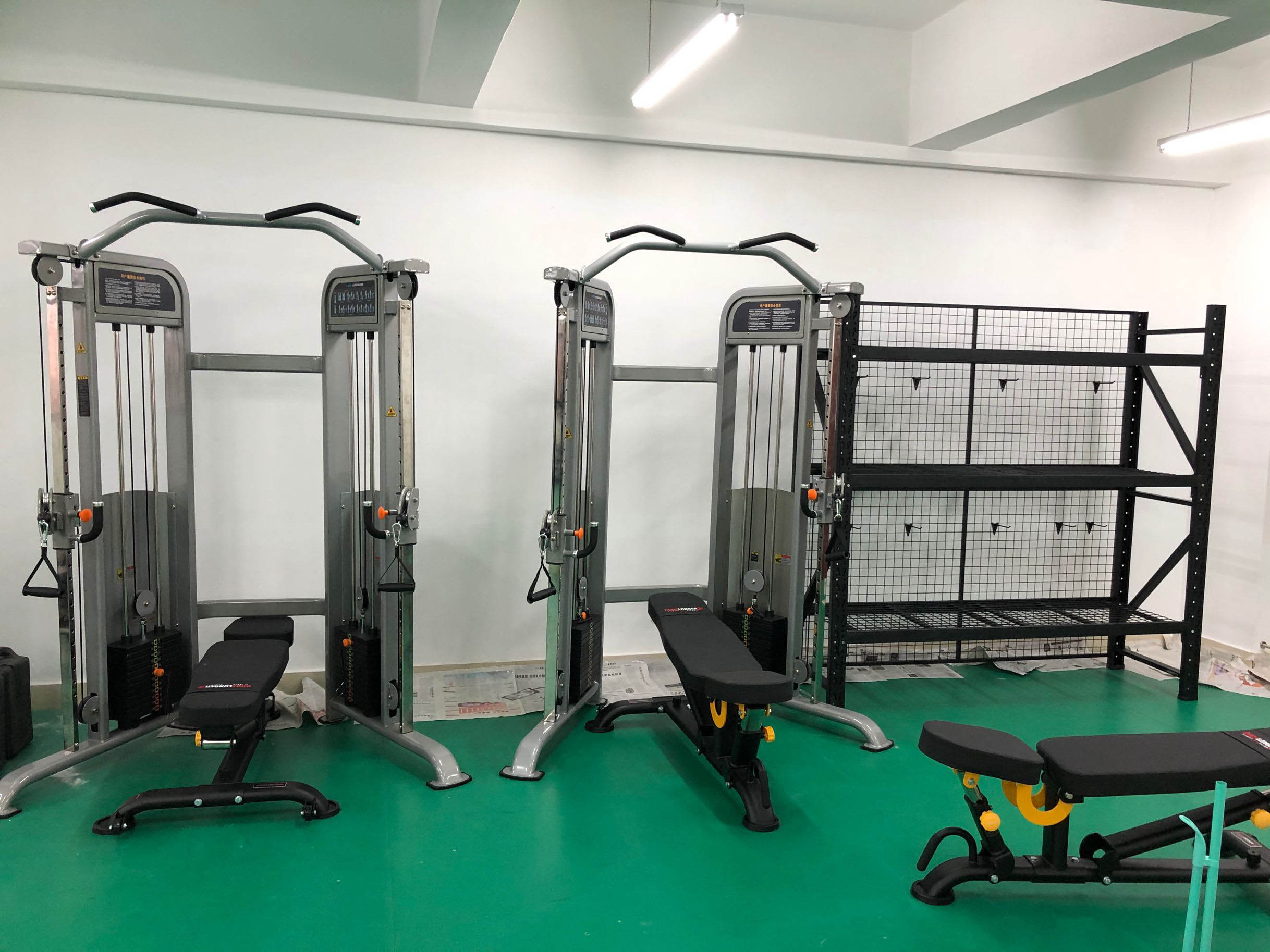 另外考虑到有力量锻炼需求的人员,也配置几台单功能设备和哑铃架。