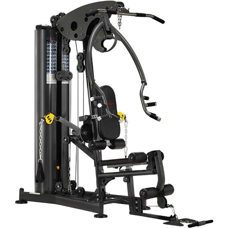 康强单人站BK179综合训练器是综合了高位下拉器、蝴蝶机、前推器、腿部屈伸训练器为一体的综合训练器械。康强单人站BK179主体管为粗矩形管,采用深灰色颜色烤漆,搭配黑红色坐靠垫铸铁配重,H型10*5cm加粗钢管加固底座;加厚加大靠垫和坐垫;主体采用80mm不锈钢立柱,厚度达到6mm结实坚固,六角螺钉加固,尼龙钢轴滑轮。